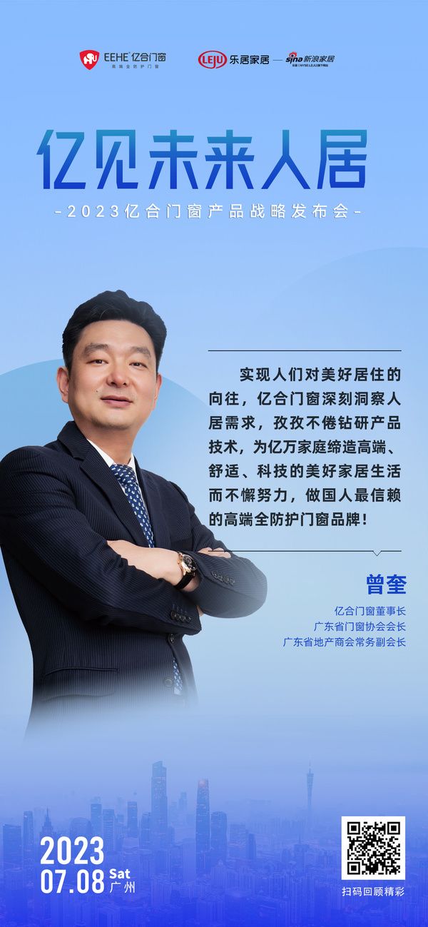 广东省门窗协会会长,广东亿合门窗科技有限公司董事长 曾奎:实现人们对美好居住的向往,亿合门窗深刻洞察人居需求,孜孜不倦钻研产品技术,为亿万家庭缔造高端、舒适、科技的美好家居生活而不懈努力,做国人最信赖的高端全防护门窗品牌!