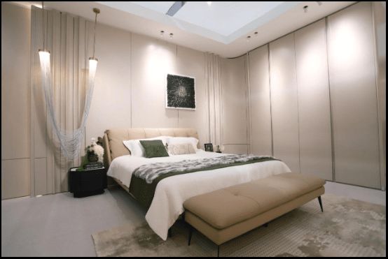 同时,对于家居空间来说,要追求更高层次的美学,工艺是基础。板木结合一直是莫干山的特色工艺,而“颂”系列则突破板木结合工艺的上限,3米超高门板一体成型,门墙柜一体化更加成熟,搭配玻璃、皮革、金属等材料,让家居美的同时更加耐用。