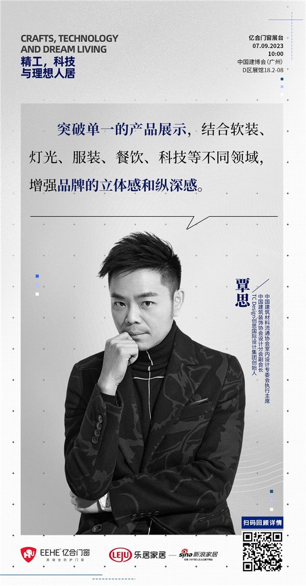 7月9日,广州建博会持续进行中。以“匠造万象 科技致美”为主题的亿合门窗展馆依旧吸引大量观展者驻足。亿合门窗联合新浪家居特别策划设计师分享会TC Design创思国际设计集团创始人、中国建筑装饰协会设计分会副会长覃思以《精工,科技与理想人居》为主题展开精彩分享。