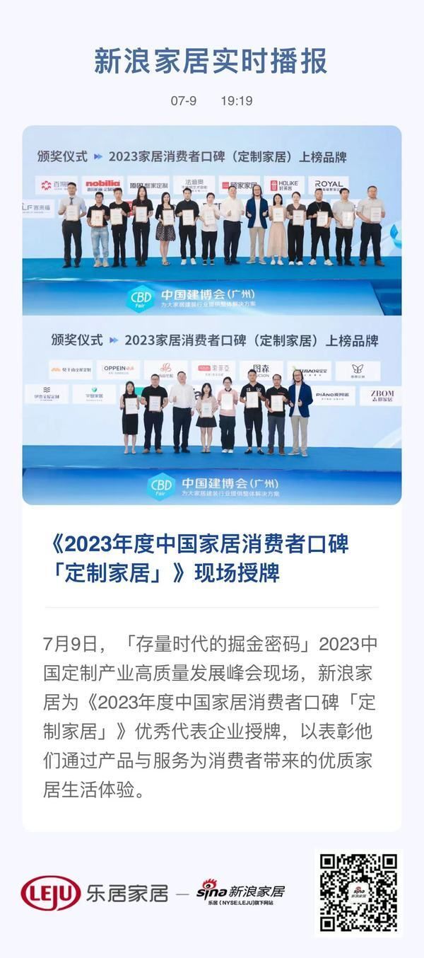 《2023年度中国家居消费者口碑「定制家居」》现场授牌