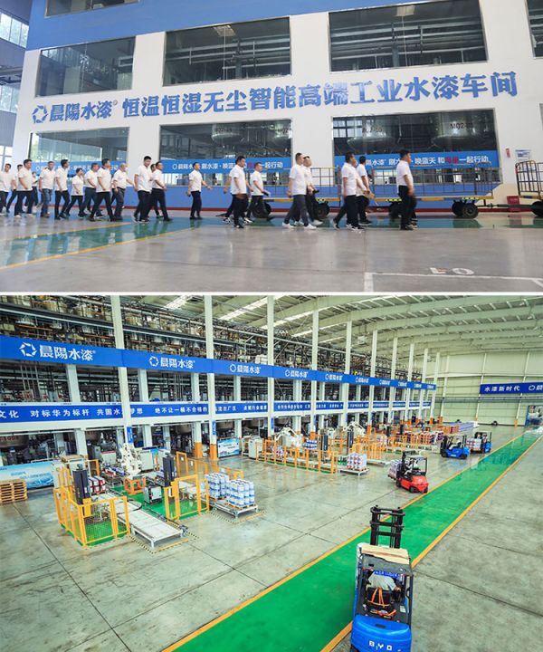 会议期间,参会的市场将士还参观了晨阳千亩产业园,零距离感受生产一线,智能车间里机械手不停挥舞,水漆源源不断地灌装。物流区工人们正将一桶桶水漆装车发运,后方稳定的生产供应保障大大激发了大家的销售热情与工作激情,更加提升了销售团队的信心,为今后给客户提供优质的服务打下了坚实的基础。