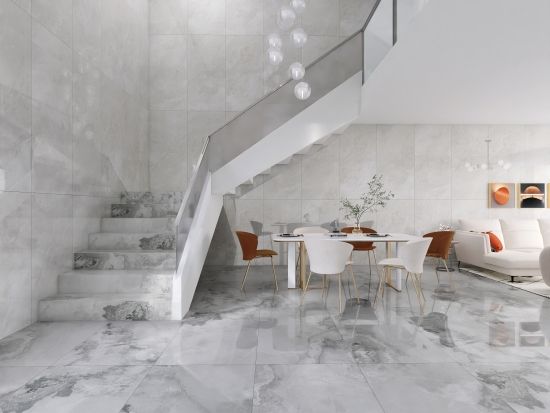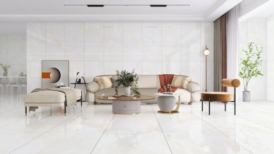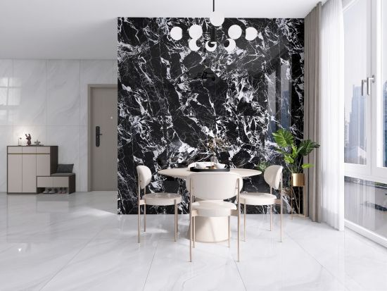 砖面温润透亮,洁白版面蔓延着玉石细腻而随性的自然纹理,带来雅致、安宁的空间氛围,不经意间彰显出空间的艺术格调