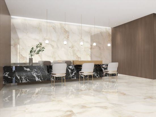 晶玉石韵大板的砖面更为细腻、平整、且釉面防滑系数增加。防滑性能大大提升,即使遇到水汽,也同样能保证良好的防滑性能。