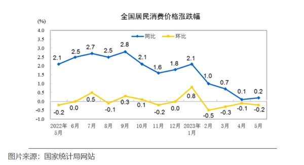 同时,进入2023年,近半年消费低迷已成事实,以国家统计局最新公布的居民消费价格指数CPI为例,继春节“报复性消费”的1月同比上涨2.1%后,2月、3月的CPI涨幅连续回落,3月同比涨幅更是跌破“1”,降至0.7%,4月也仅仅同比上涨了0.1%,出现了类通缩现象。