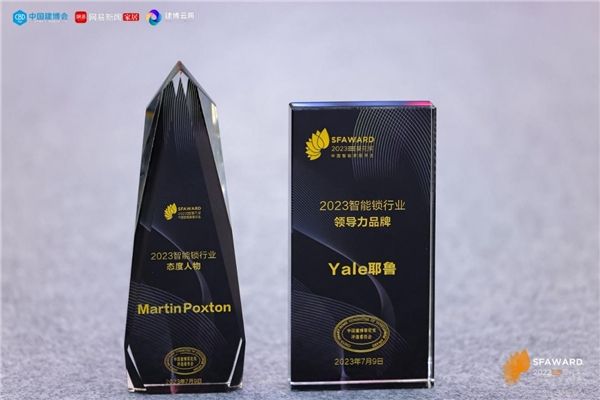 2023年7月9日,第七届中国葵花奖智能家居颁奖盛典在广州盛大举办。Yale耶鲁一举赢得智能锁行业五项大奖,包括“2023智能锁行业领导力品牌奖”、“2023智能锁行业产品金奖”、“2023智能锁行业质量安全奖”和“2023智能锁行业工业设计产品奖”。亚萨合莱集团执行副总裁, 大中华及东南亚区总裁Martin Poxton生荣获“2023智能锁行业态度人物奖”! 2023年是Yale耶鲁连续第三年荣膺“葵花奖”!