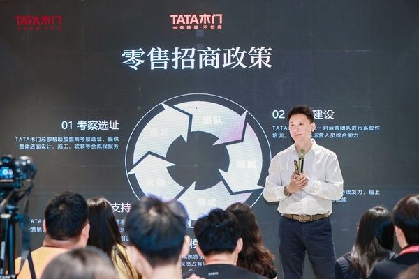 针对零售业务,TATA木门会从新店的考察选址开始参与,在后期团队建设、线上赋能、模式导入、营销支持等多方面提供五维一体化政策支持;而在工程渠道业务上,TATA木门将共享战采资源、商机资源、工程授信、配套物料支持;同时提供商务扶持、内勤培训、项目管理、系统开放等四大帮扶政策;海外方面,为合伙人提供商机有效授权、工程项目底价供货、由总部统一设计上样、店面补贴等多项经营性支持,多维度,全方位辅助合作伙伴发展。