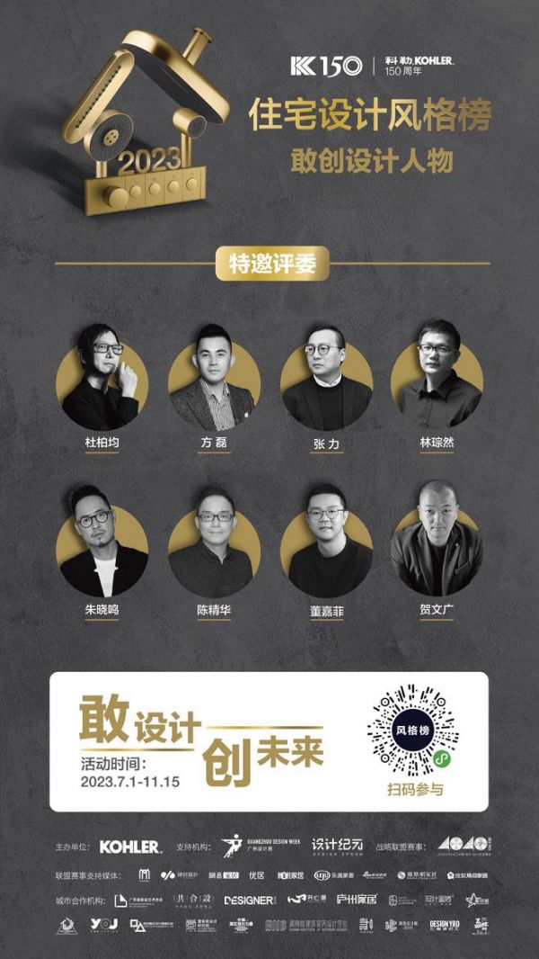 “2023年科勒住宅设计风格榜”在原有作品评选的基础上首度增设敢创设计人物评选,科勒将联合设计纪元、广州设计周及20个城市合作协会机构提名150位优秀的青年设计师参选人,并由评审团评选30位年度设计敢创人物,在设计圈及媒体平台持续传播,加持设计师个人IP塑造,成就设计行业中坚力量。