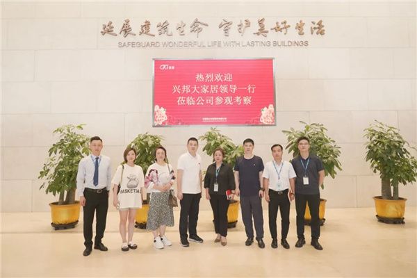兴邦大家居招商负责人宋建忠、兴邦大家居采购负责人徐淼林、兴邦大家居主材总监申小英以及兴邦大家居主材经理陈南等领导共同前来参观交流。