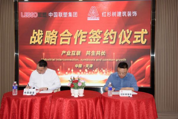 近日,联塑家装与天津红杉树建筑装饰有限公司在天津签署战略合作协议。联塑家装重要客户部总监黄景胜,天津红杉树装饰总经理于建林、天津众投发展建材销售有限公司总经理王思友等出席签约仪式。
