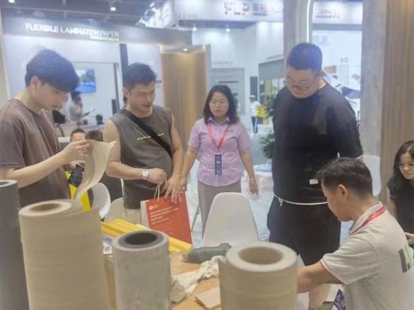 为了让观展商客更直观了解浪美装饰贴膜产品优势,展会现场还演示了装饰贴膜应用技术。浪美装饰贴膜不仅能贴平面,也能用于异形面贴膜,满足更多艺术造型贴膜需求。相比于传统材料,装饰贴膜用于表面处理,免油漆,健康环保,施工高效便捷,无粉尘,无噪音,可广泛应用在家具改色、酒店翻新,以及医院、学校、写字楼、机场、高铁、地铁等大型公共建筑。