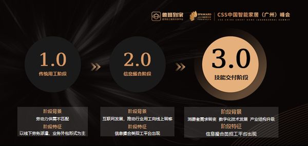 在经过传统用工的1.0阶段、信息撮合的2.0阶段,大家居后市场服务正在加速进入技能交付的3.0阶段,数字化服务为大家居产业升级带来了全新变化。
