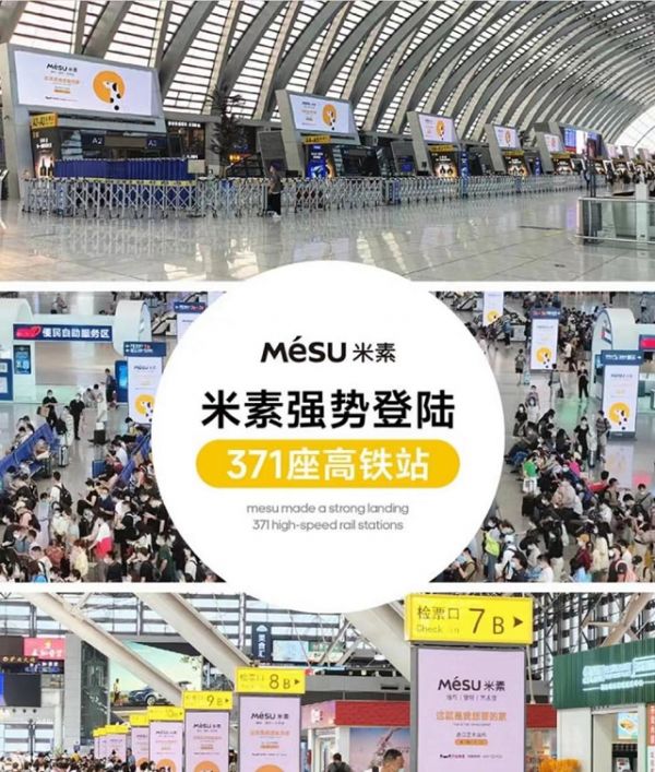 米素聚焦流量高地,强势登陆全国371座高铁站,通过简洁大方又具有记忆点的米素亮黄色品牌IP与消费者进行近距离接触,强势吸引人流,让品牌形象深入人心,以高铁广告的高覆盖率和强渗透性提高品牌曝光率,进一步提升品牌影响力。此外,米素紧随互联网变化趋势进军抖音及天猫电商平台,抢占线上流量高地,抖音账号开通后短时间涨粉10万,更是天猫电商家居领域排名领先的金牌店铺。米素结合新兴社交媒体和电商平台的特性,输出优质有趣的内容,开展钜惠活动,对标目标人群,不断扩大品牌曝光度,实现多维度触达终端市场。