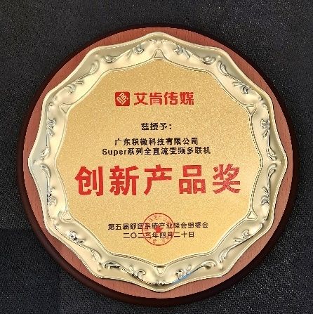 荣获本次峰会“创新产品奖”的Super系列全直流变频多联机,作为工装性价比优选产品,应用了积微GCHV在节能性、可靠性、智慧化等方面的新技术成果,搭载国际名优双转子压缩机,低频效率更高,达新国标一级能效等级,且运行噪音低,抗液击能力更强。该系列单模块容量范围8-30HP,最大组合容量120HP,轻松胜任不同场景需求,可在营造舒适健康空间环境的同时,赋能建筑低碳升级。