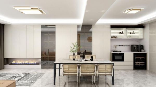 除了餐边柜,餐厅还需要考虑餐桌和椅子的摆放位置。一般来说,餐桌应该放在靠近窗户或明亮的位置,以便采光和通风。同时,餐桌的大小也要根据家庭成员的数量和用餐习惯来选择。
