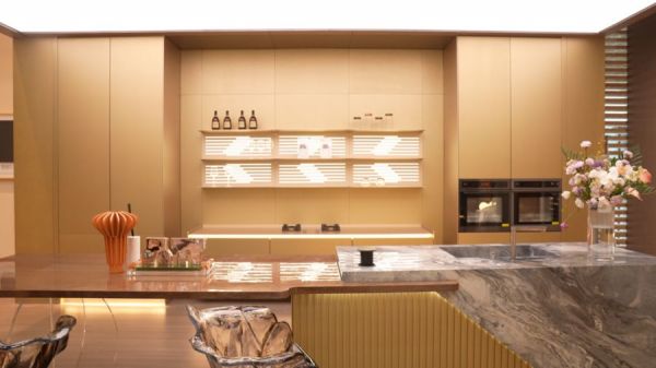 意式轻奢的星朗系列,营造出充满未来感的开放式餐厨空间。金属质感的柜板,水墨画般的大理石台面,透明如绽放花朵的餐椅,智能的交互,将宇宙赛博的元素融于空间,让参观者们流连忘返。