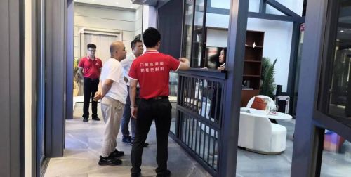 期间,他们一直在联系亮阁门窗的招商经理(兰经理和刘经理),邀约之下来到亮阁门窗总部旗舰店参观,对亮阁门窗的产品款式、设计研发还有公司的企业文化都比较感兴趣,但当天还没有做下决定!
