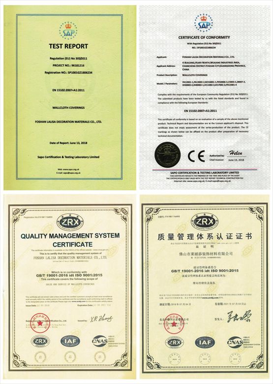 经国家建筑材料检测中心出具的报告来看,重金属和甲醛均未检测出,莱丽莎壁布不愧是十大墙布品牌之首,每款产品的都是健康环保的,品质有保障,在国际上也获得了多项认证。