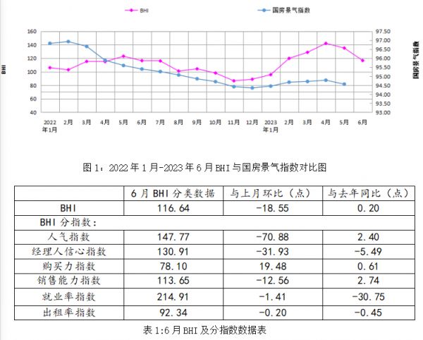 中国建材流通协会行业研究部就本期BHI数据解读:6月受高温多雨天气影响,全国建材家居市场步入传统淡季,终端需求走弱,BHI继上月再次走低。2023年上半年,国际环境复杂严峻,国民经济持续复苏,但经济增长内生动力不足问题凸显,全国建材家居市场“体感”仍然不好,市场整体表现喜忧参半。