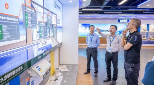 在总部展厅,重庆唐卡装饰领导深入了解公司的发展历史、企业文化、业务发展、技术工艺等企业实力与优势,对科顺民建集团的企业实力表示强烈认可。