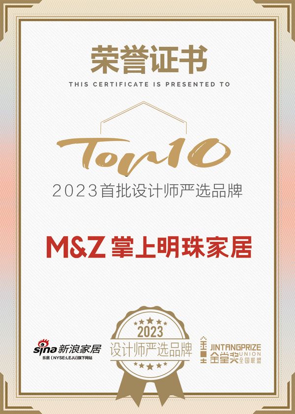 近日,由新浪家居联合金堂奖全国联盟共同发起的「2023 设计师严选品牌TOP10」活动重磅启动,活动汇集了全国两岸三地数十位设计大咖担纲特邀点评嘉宾,并邀请全国千余名卓越青年设计师担任推荐官,将以设计师专业视角,甄选出服务于设计师及业主的高品质制造品牌。掌上明珠家居荣膺「2023 首批设计师严选品牌TOP 10」称号。