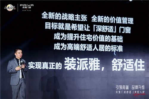 派雅门窗创始人、董事长李钧洪表示,派雅主动发起价值升维,目的在于缔造面向未来的高端人居新标准,推动门窗行业向高端化迈进的同时,实现品牌的“二次腾飞”。