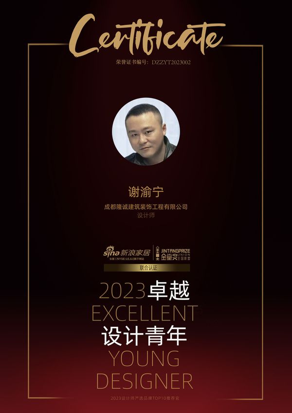 由新浪家居和金堂奖全国联盟发起的“2023卓越设计青年”,是设计业界最具传播价值的年度先锋荣誉,由新浪家居与金堂奖联名认证。本期荣膺“2023卓越设计青年”称号的是隆诚装饰创意总监——谢渝宁。