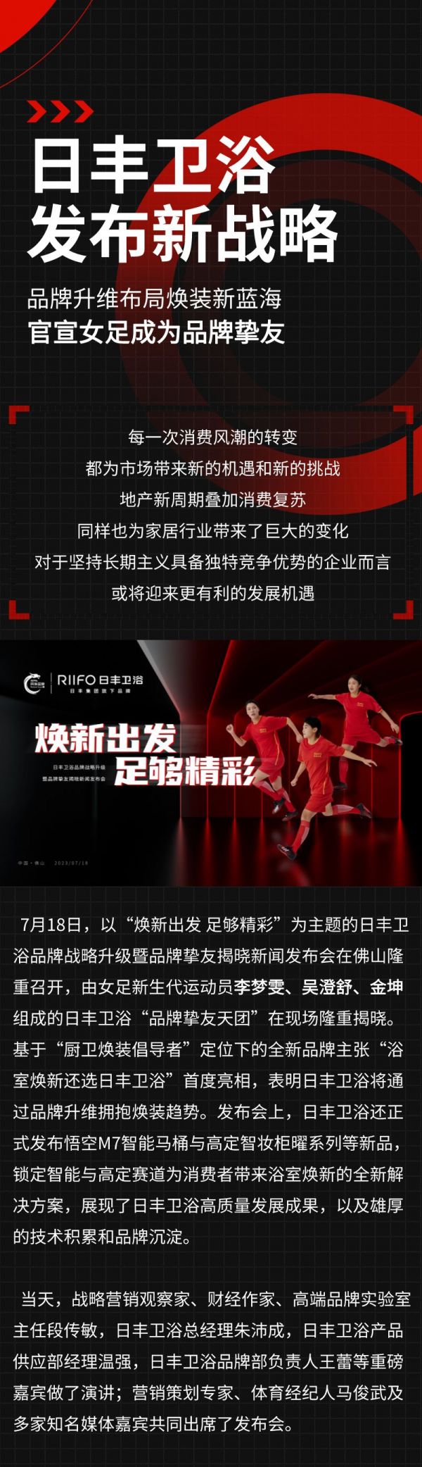 日丰卫浴发布新战略:品牌升维布局焕装新蓝海,官宣女足成为品牌挚友