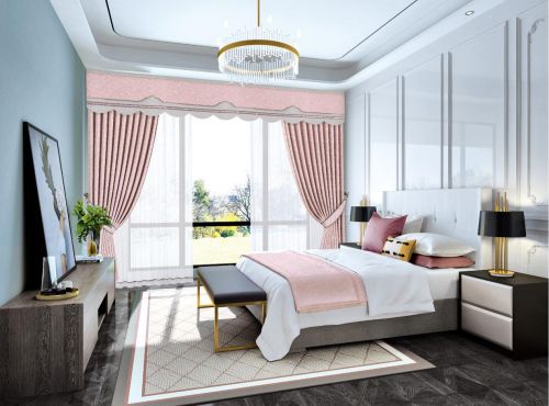 飘窗的结构比较独特,适合贴着飘窗里侧的墙面安装普通窗帘或纱帘。这样的布置方式可以更好地配合飘窗的设计,同时也能保护飘窗区域的隐私和遮光效果。