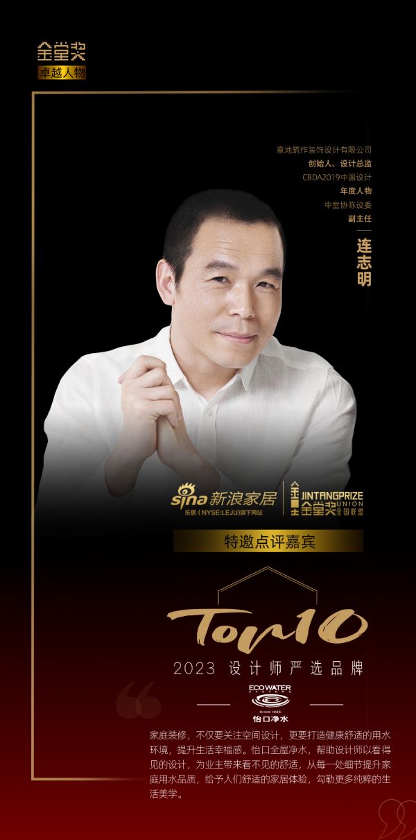 近日,由新浪家居联合金堂奖全国联盟共同发起的「2023 设计师严选品牌 TOP10」活动重磅启动,活动汇集了全国两岸三地数十位设计大咖担纲特邀点评嘉宾,并邀请全国千余名卓越青年设计师担任推荐官,以设计师专业视角,甄选出服务于设计师及业主的高品质制造品牌。怡口净水荣膺「2023 首批设计师严选品牌TOP10」称号。