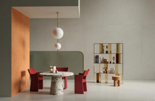 如果是喜欢暖色调原木简约风,地砖可选用马可波罗2023年新品大板法拉拉石,原木色与白色面饰板相映成趣,营造出一种温和而舒适的色彩氛围,其取材于文艺复兴经典建筑设计原材蓝本,再现钻石皇宫的恢宏大气,饱含岁月的洗礼。