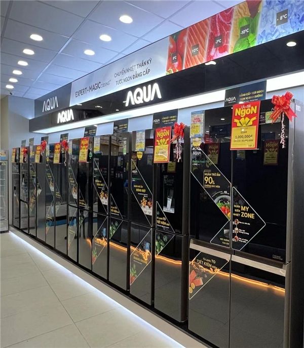 在洗衣机行业,AQUA越南相继迭代了601mm超大筒径洗衣机、搭载全新彩膜触控显示屏的Color AI自动洗衣机等高端产品,来提升在高端市场的品牌竞争力。601mm高端系列搭载的超大筒径、超声波空气洗等引领性功能,不仅能使高端衣物得到自由舒展,还可最大程度呵护衣物减少洗涤磨损。据悉,该产品上市即实现了引爆,在终端售价高于市场均价3.6倍。