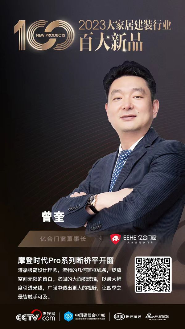 《百大新品》丨对话亿合门窗董事长曾奎:永葆热爱,以高端全防护守护美好生活!