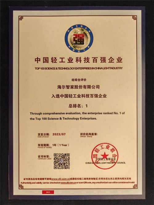 7月20日,中国轻工业联合会主办了以“迈向世界一流企业 服务人民美好生活”为主题的轻工业百强企业高峰论坛,并在会上了发布了“2022年度中国轻工业二百强企业”榜单、“2022年度中国轻工业科技百强企业”榜单。海尔集团、海尔智家持续引领榜单。其中,海尔智家连续3年蝉联“中国轻工业科技百强企业”第一。