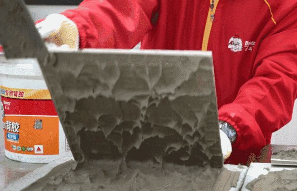 上述因单面上浆导致不满浆的情况,存在空鼓掉砖风险。而使用双面上浆,瓷砖胶与砖背、基面都有很好的接触,满浆率高。这样才可有效确保瓷砖安全上墙,持久牢固。