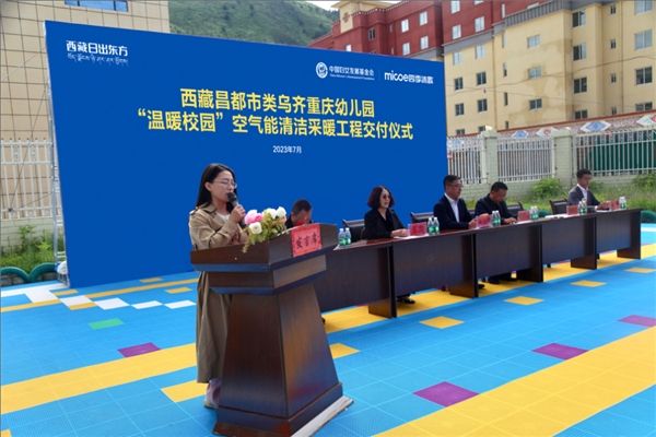 仪式上,昌都市妇联党组成员、四级调研员熊贵兰在讲话中强调,四季沐歌为昌都市类乌齐县重庆幼儿园解决取暖问题落实的不仅仅是一所幼儿园的爱心公益项目,同时也是四季沐歌、类乌齐县和政府妇儿工委积极落实和共同推动类乌齐县妇女儿童事业发展的一项暖心举措。熊贵兰对四季沐歌“温暖校园”空气能清洁采暖工程给予了高度评价,对四季沐歌的公益举措表示了感谢,同时呼吁更多的爱心企业和爱心人士帮助解决昌都妇女儿童“急、难、愁、盼”问题,共同助力昌都市妇女儿童事业发展迈上新台阶。