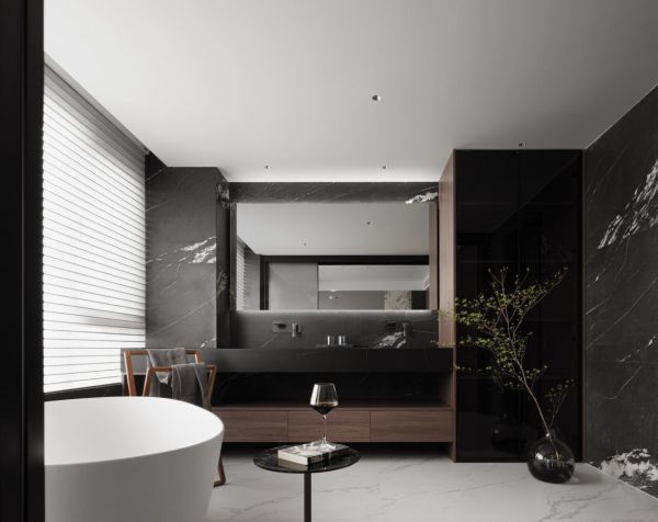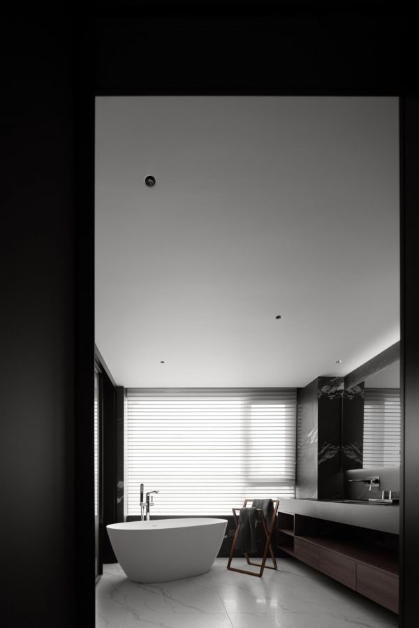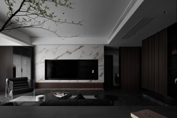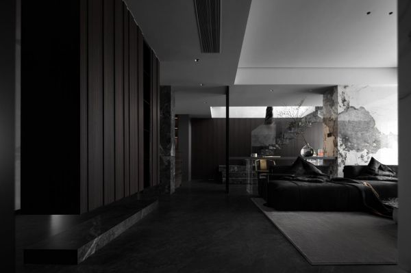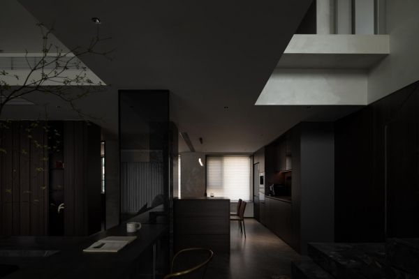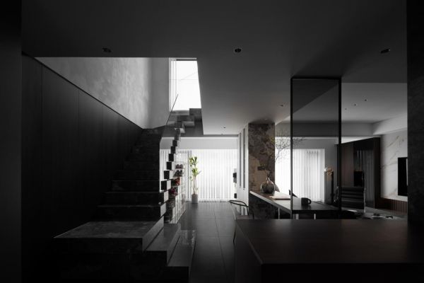 整个空间结构梳理至最简单纯粹的形式,客厅、书房和楼梯间之间形成了一种穿插的空间感,带来了更加开阔自然的感受,整体颜色偏稳重,选择部分区域选择白色大理石作为点缀,光影,空间,色彩上都加深了层次感,形成了一处动线顺畅,视野开阔的融合空间。