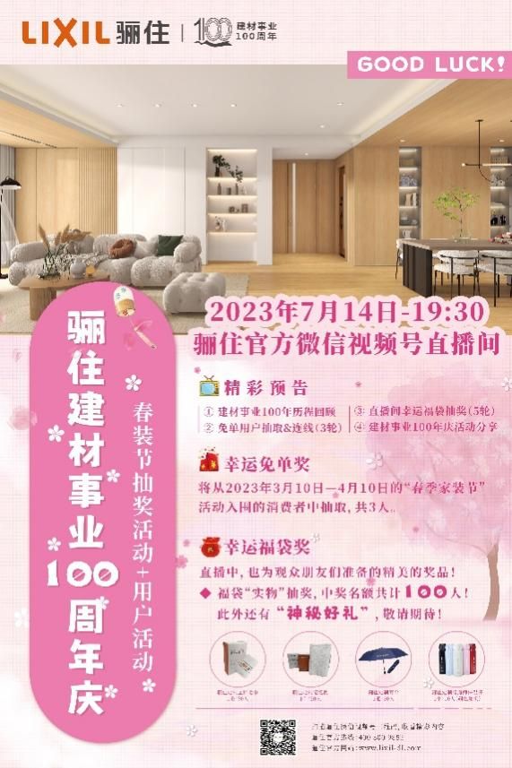 本月,7月14日骊住又通过视频号直播形式与消费者分享了骊住建材事来百年庆活动规划,骊住建材事业100周年庆感恩回馈活动也在此正式拉开帷幕。据了解,本次直播活动中也现场抽取了骊住3月春装节全国促销活动中的免单客户。