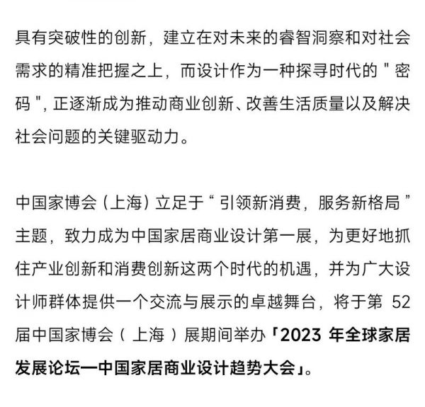 2023年9月5-8日,上海虹桥国家会展中心,欢迎前来「2023年全球家居发展论坛—中国家居商业设计趋势大会」,共探行业新趋势!
