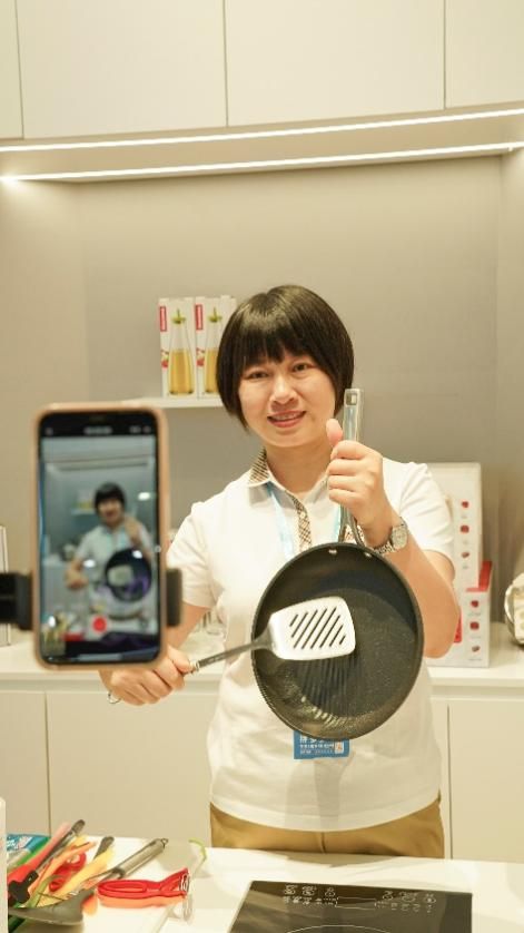 其中,最引人注意的是把直播间搬到了展会现场,主播们将产品体验与美食烹饪相结合,在分享烹饪技巧的同时适当加入产品知识的讲解,真实有趣且美食含量100%的硬核直播吸引了大量围观。