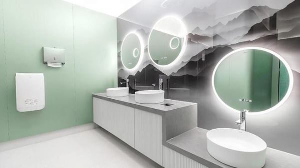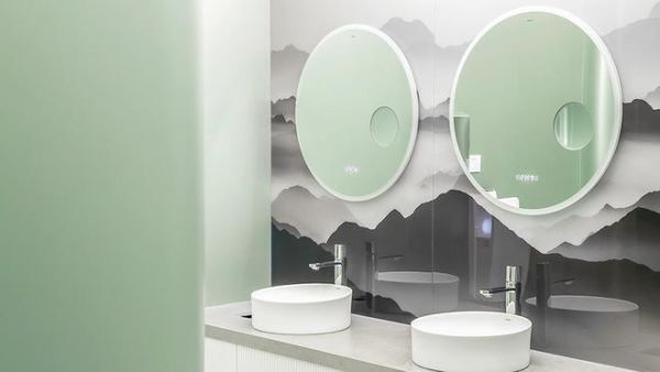 以线条构筑出空间的礼序,选用恒洁智能圆镜、硫晶瓷系列艺术台盆,平添一丝清雅的禅意,与整体设计理念相呼应,打破公共卫生空间刻板印象。