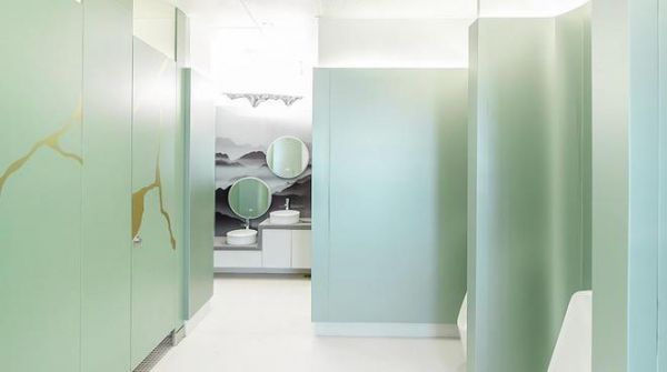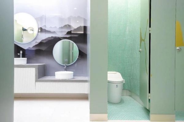 除考虑空间的美学意义之外,对于公共卫生空间而言,最终仍需回归到使用,让空间真正服务于人。设计师充分考虑人在使用中的人性化部分,结合恒洁推出“全卫空间定制服务”进行定制化设计,设计师设置第三卫生间、增添母婴、儿童友好设备等,为大众提供安心与品质的公共服务保障。
