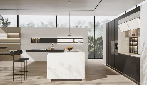 这款来自引意的TOUCHING系列橱柜,采用简约克制的设计手法,创造高度有序的产品空间,极简的外观、开放式布局,营造明朗开阔的空间环境。近乎裸色的搭配,予人严谨且宜居的都市感。