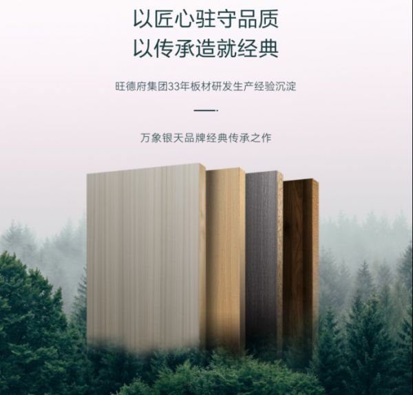 秉持旺德府集团“为社会创享健康美好的居办环境”这一伟大愿景,万象银天响应社会需求,深耕环保板材,在推出系列ENF级国标环保产品的同时,也积极探索家居美学之道,推出系列新花色,为消费者打造时尚健康家居生活提供丰富选择。