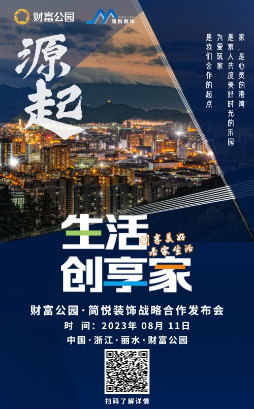 8月11日财富公园·简悦整装战略合作发布会即将盛大启幕,届时将开启丽水超大规模一站式8000㎡的整装大店模式新时代,这对于丽水的家装行业具有里程碑的意义,欢迎社会各界积极报名参加,共同见证这一历史时刻。