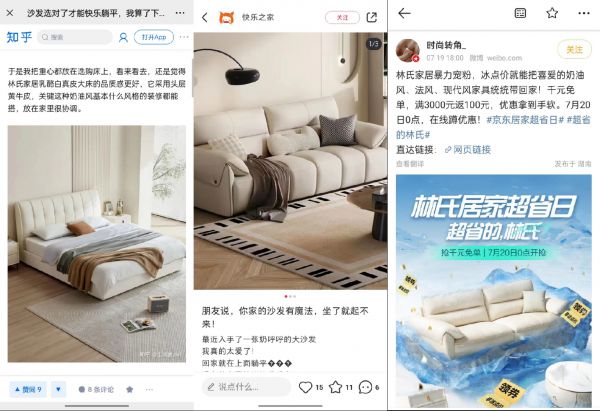 另一方面,林氏家居持续深耕年轻人聚集的微博、小红书等渠道也实现营销共振。此次“超省的,林氏”促销活动便联动生活博主、家居博主和时尚博主等多圈层KOL,分享令人心动的“破冰”优惠,深度种草多款产品。并以微博话题实现高曝光,赋能营销话题,让营销触达意向人群,最终打造出全网累计2800万次的曝光声量,有效助力超省日的销售爆发。