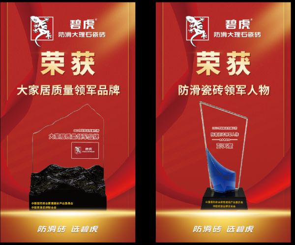 本次大会,碧虎荣获“大家居质量领军品牌”称号,充分彰显了碧虎从产地、技术、产品等多方面的高质量实力,也印证了碧虎在防滑砖领域创领者的地位。