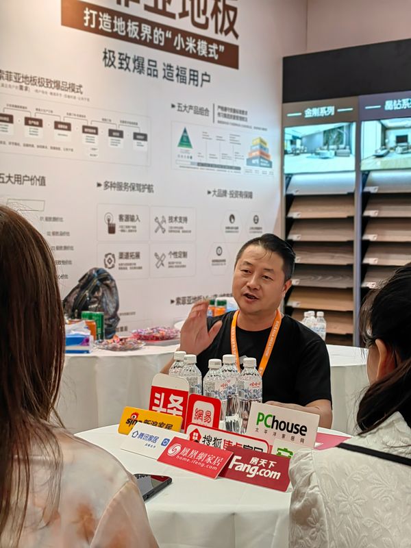 在索菲亚·墙地一体|空间定制展厅,客商可以全方位地了解索菲亚地板极致爆品模式。“我们的目标就是要打造地板界的‘小米模式’,既然内卷已是事实,那就卷到极致。”索菲亚·墙地一体|空间定制全国市场总监姚武鹏介绍了索菲亚地板“小米模式”营销策略。