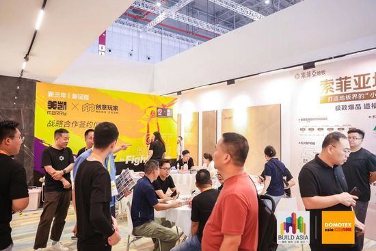 (7月26—28日,上海)DOMOTEX asia/CHINAFLOOR 2023中国国际地面材料及铺装技术展览会在上海国家会展中心盛大开幕。随着国内外展商全面回归,索菲亚·墙地一体|空间定制首次精彩亮相6.2A01展位,以出色的产品魅力和招商模式,吸引了众多客商的关注,展馆现场人头攒动,精彩纷呈。
