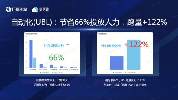 巨量引擎提供的自动化(UBL)工具完成同样的投放体量,只需更少的操作次数,可以节省66%的投放人力。