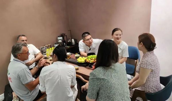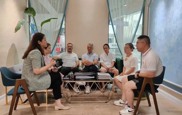 7月14日上午,上海沐瑟涂料有限公司董事长余晓晓女士、总经理陈晓晓女士及总部一行陪同意大利Saber集团总裁Bernini Andrea 、市场总监Giovannini Marco来到沐瑟浙江义乌旗舰店。义乌作为中国最大的小商品市场集散地,拥有丰富的生产资料和商业资源。我们期待在这个繁华的城市中展开更多的商业交流和技术合作。